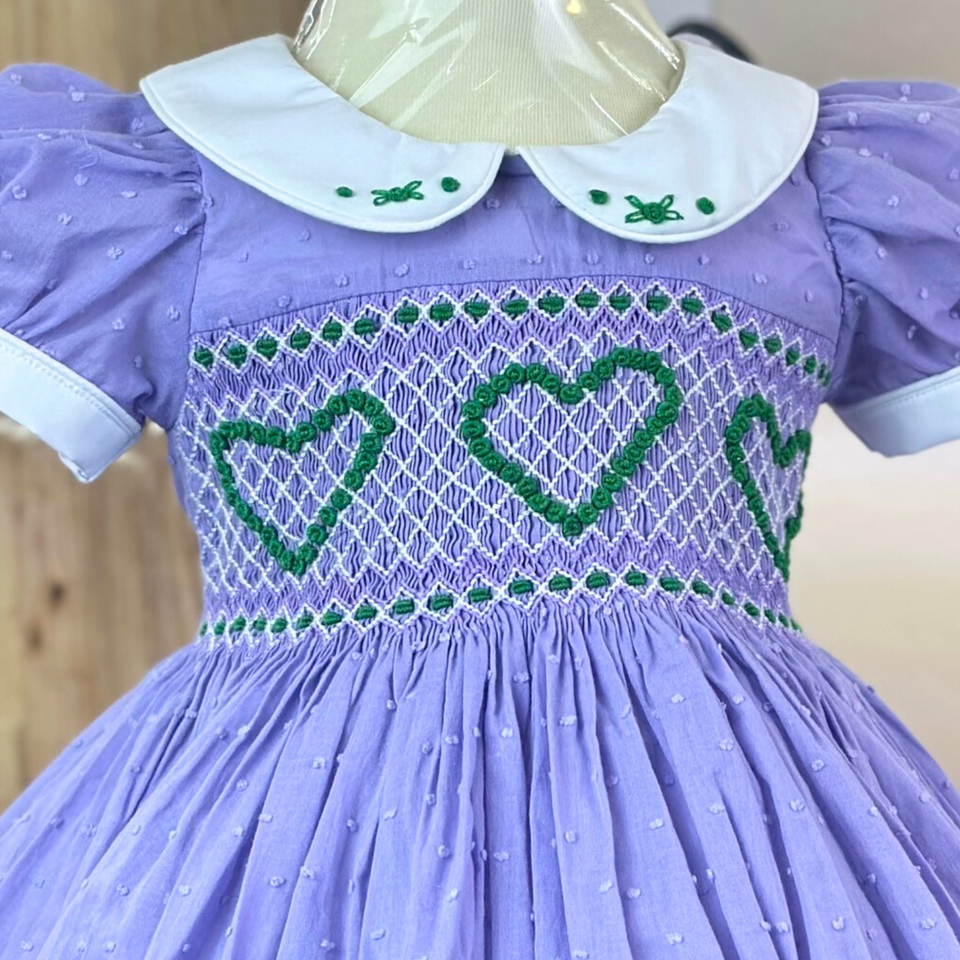 Girls Smocked Dresses Customizable 100% Cotton Purple Heart Bamboo Fabric Age Babies Customized Design Low MOQ Perfect 2M-12Y