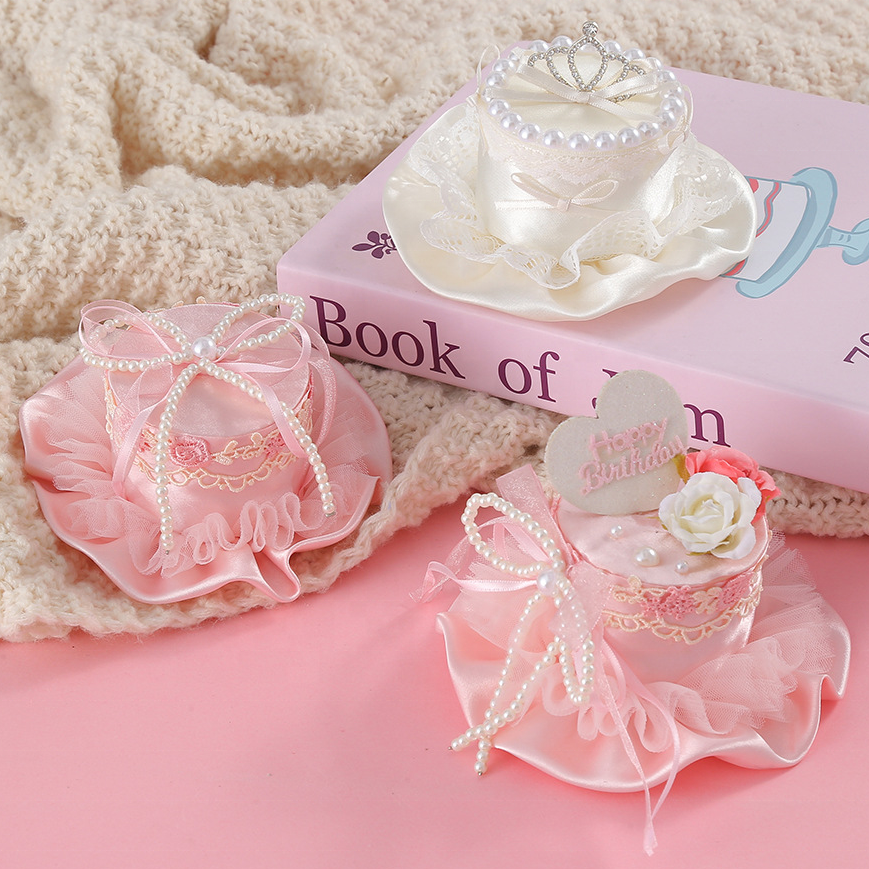Girls Solid Color Hair Clips Sweet Cake Hair Accessory Pearl Bow Knot Crown Hat Accessory