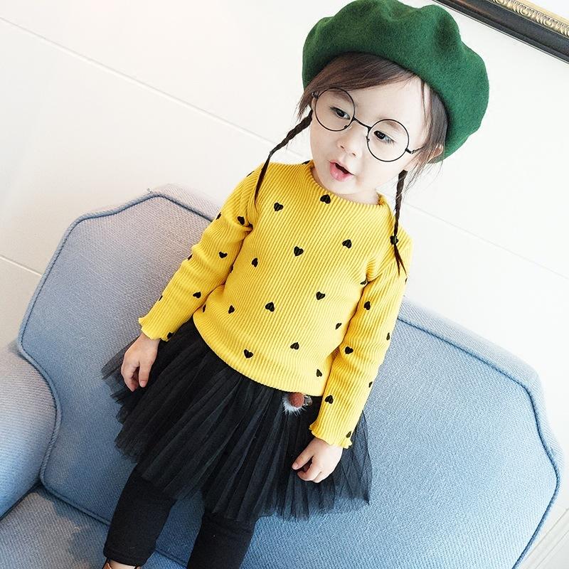 Girls T-shirt Cute Love Heart Pattern Printed Screw Thread Long Sleeve Shirt Newborn Baby Base Shirt Toddler Kid Spring Clothes