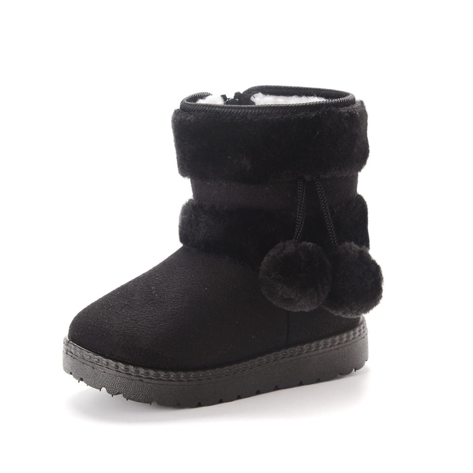 Girls Winter for Boots Cute Hairball Design High Top Anti-Proof Snow Boots Fur Lined PVC Upper Warmer School Shoes for Kids