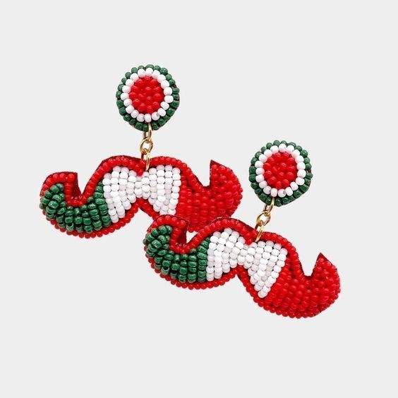 Beaded Girls Women Embroidered Seed Bead Earrings Christmas Tree Earrings Accessory Festive Jewelry Stylish Tree Design Earring