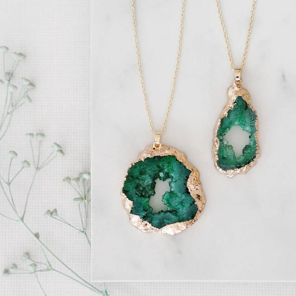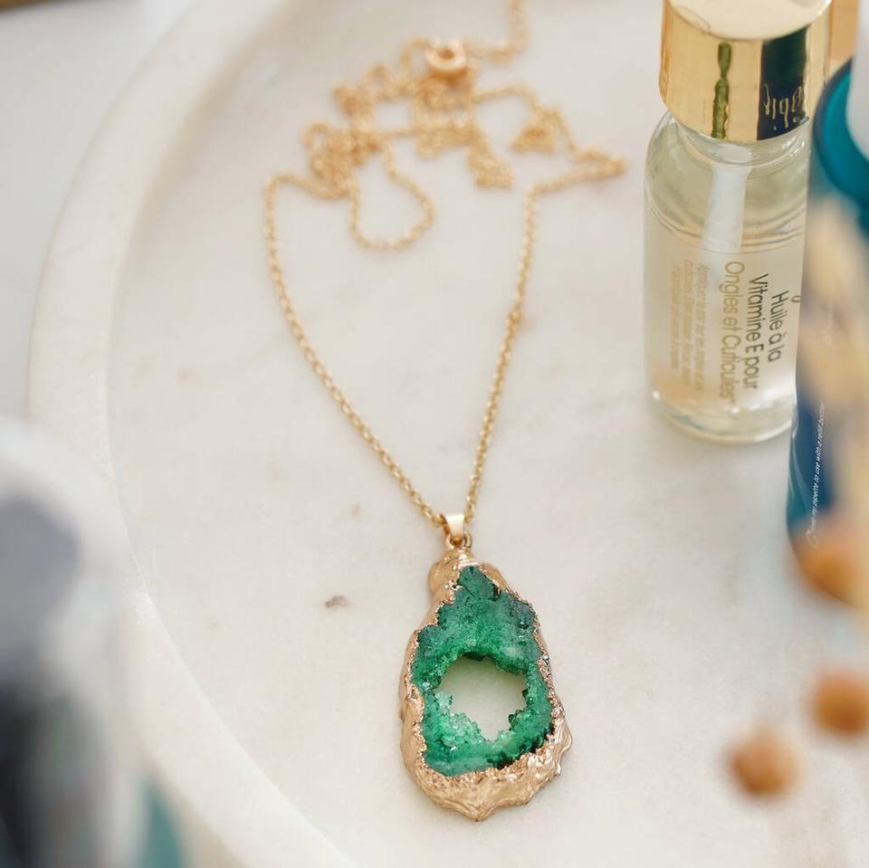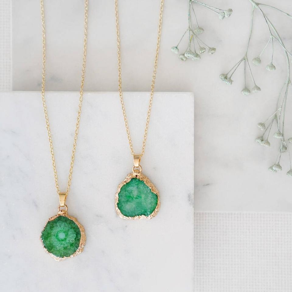 Girls Women Handmade Eco-Friendly Stylish Gold Plated Link Chain Agate Stone Pendant Necklace Diamond Pearl Perfect Party India