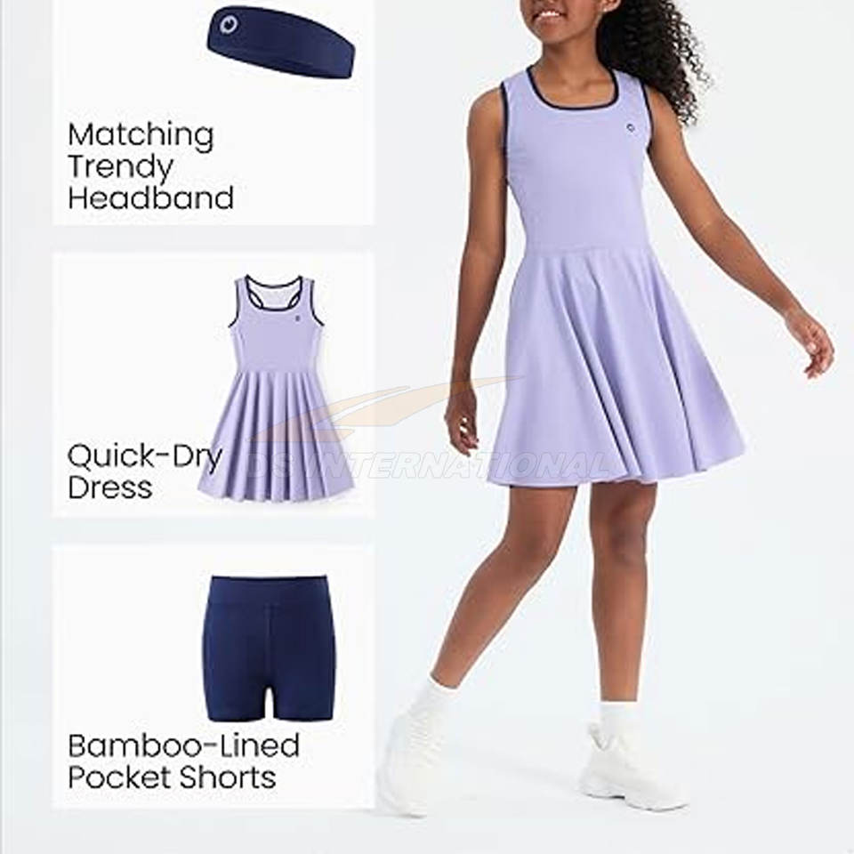 Girls Youth Tennis Golf Dress Outfit Sleeveless Tank Top Skirt Set with Built-In Shorts Custom Logo Sportswear Tennis Uniforms