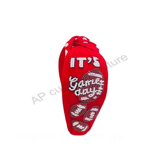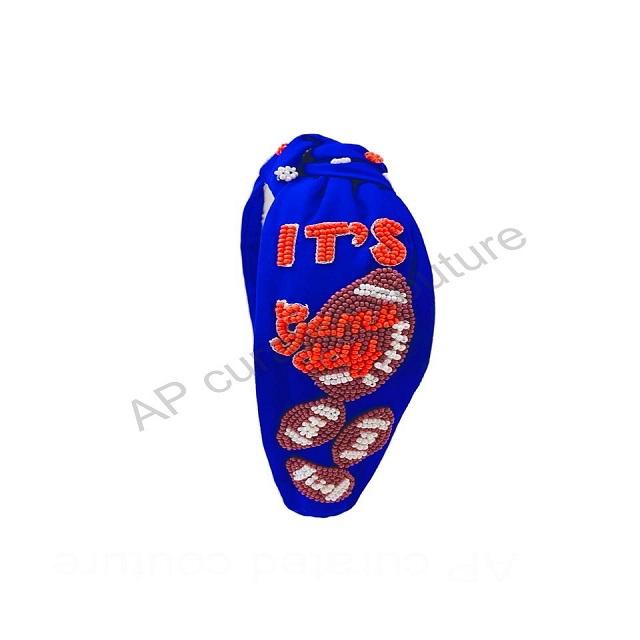 Girls sports day headband seed beaded football game day top knotted hair accessory hand embroidered