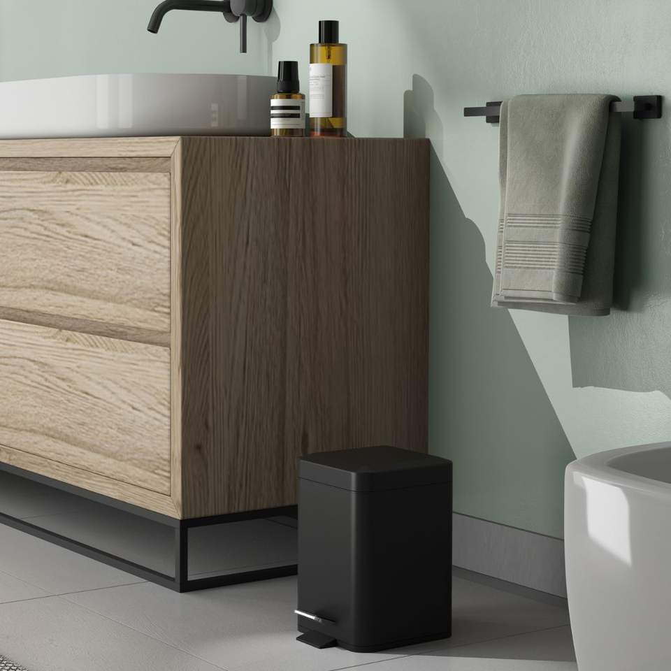 Giunone Series Square Stainless Steel Waste Paper Bin 5 Litres Soft-Close with Matte Black Finish Dimensions...