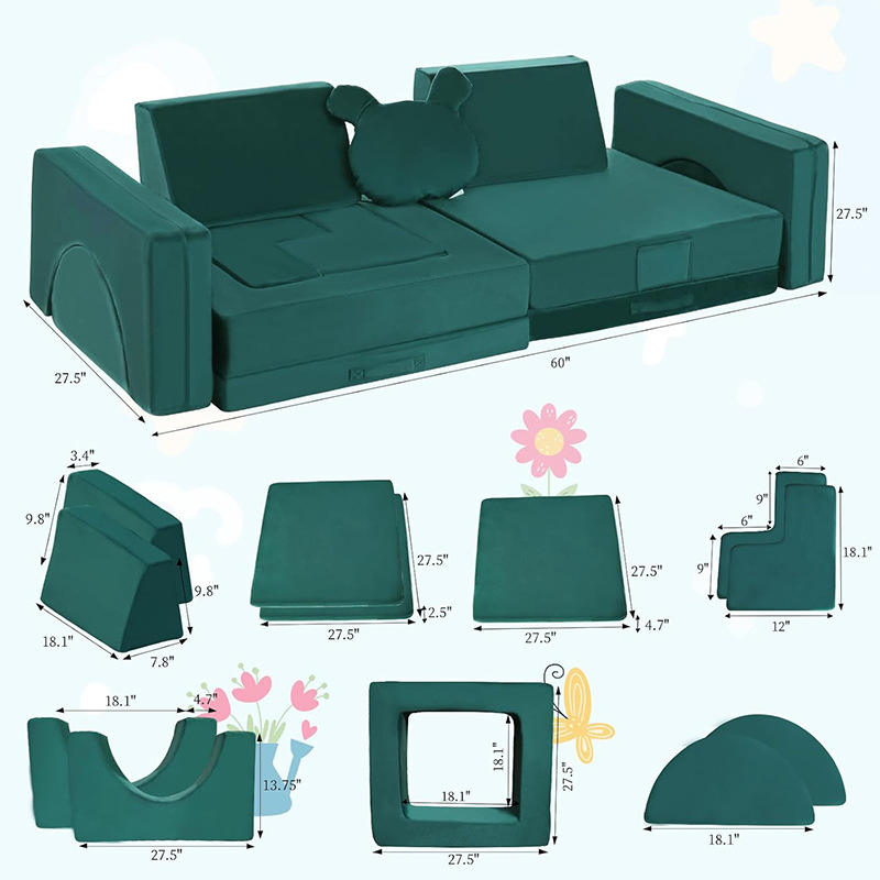 Giving Tree Modular Kids Sofa Building Blocks 17-Piece Set For Children Age 3+ Educational Play Furniture