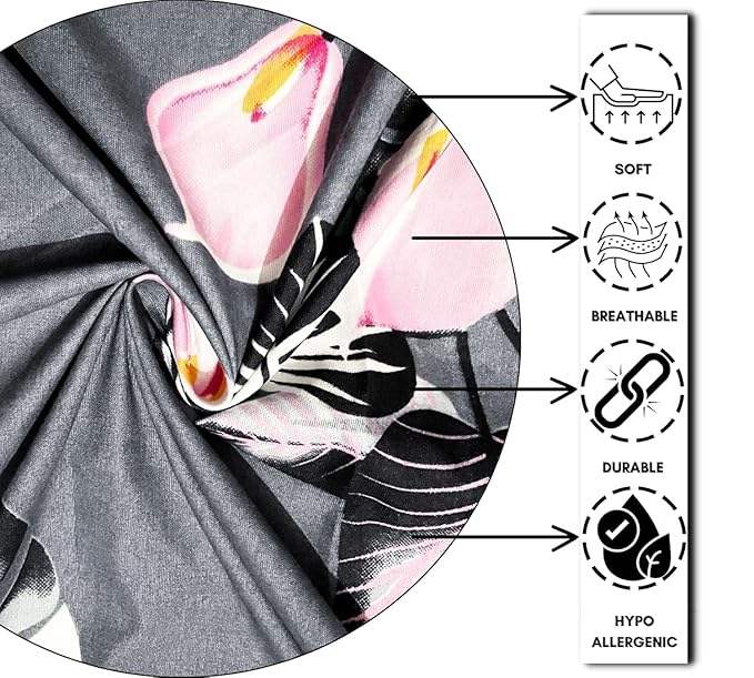Glace Cotton King Size Elastic Fitted Bedsheet for Double Bed 72 x 78 x 8 Inches 2 Pillow Cover (Grey Pink Flower)