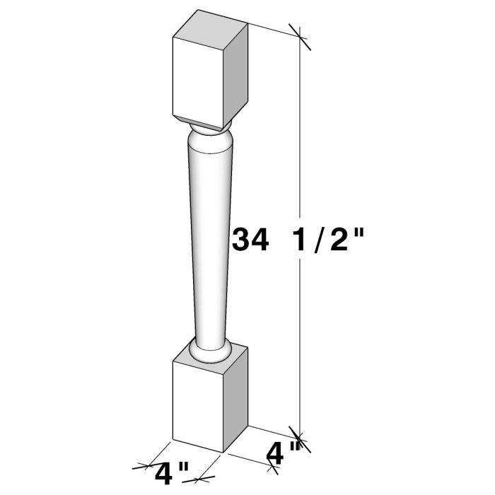 Glacier White Post Leg for Furniture W4 X H34.5 X D4 Dimensions