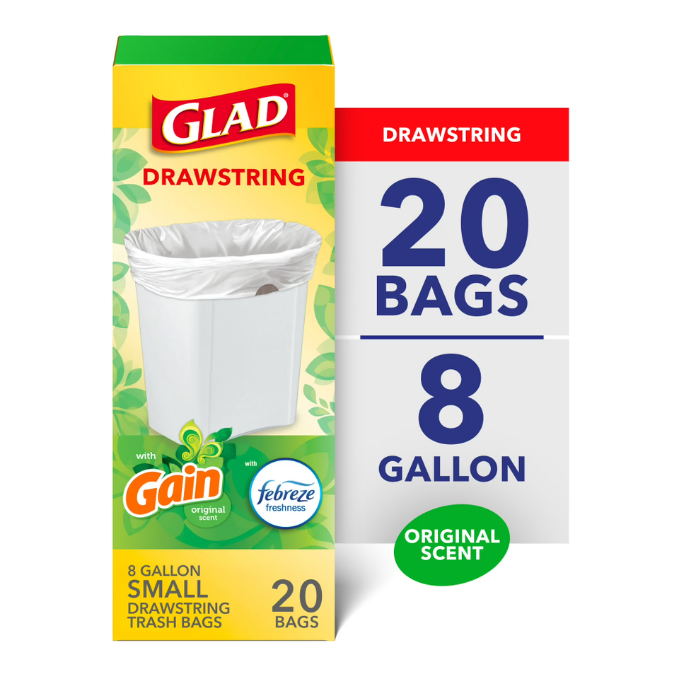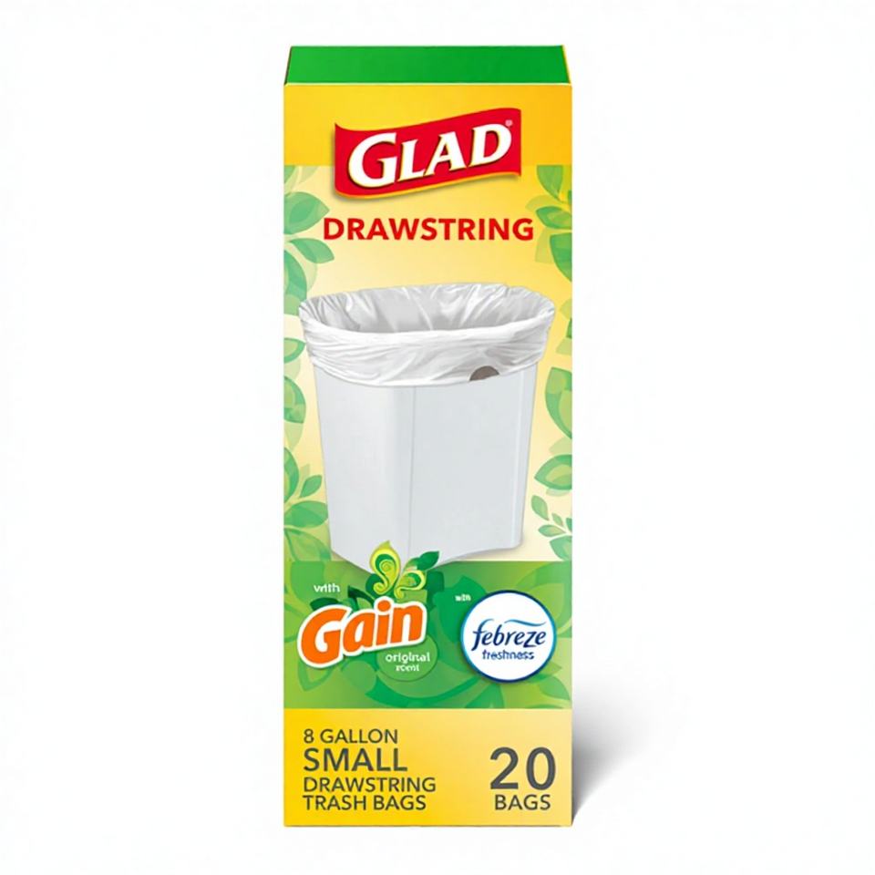 Glad Drawstring Biodegradable Recyclable Heavy Duty Disposable Thick Plastic Transparent Scent Free Trash Bags Animal Waste Bags