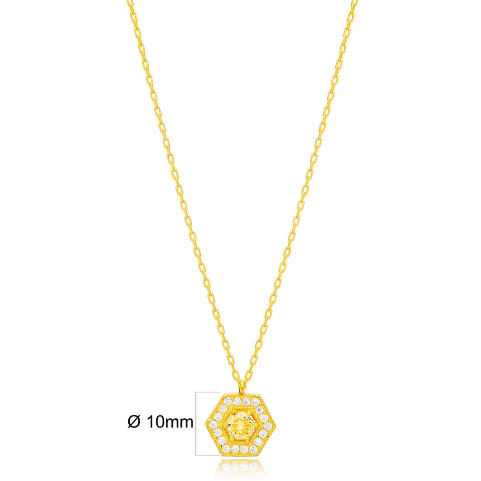 Glamorous Citrine Hexagon Charm Necklace Handmade Wholesale Turkish 925 Sterling Silver Jewelry