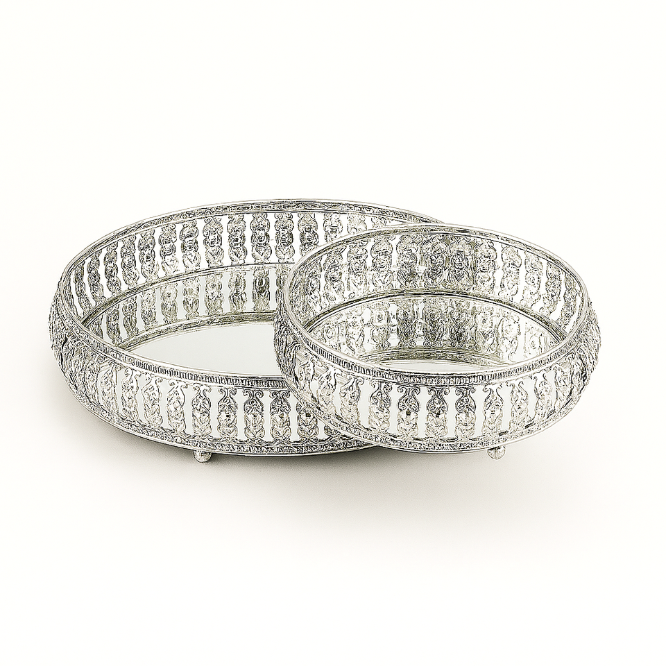 Glamorous Golden Decorative Round Tray Set with Mirror Design Elegant Serving Trays for Dining Room Luxury Home Decor