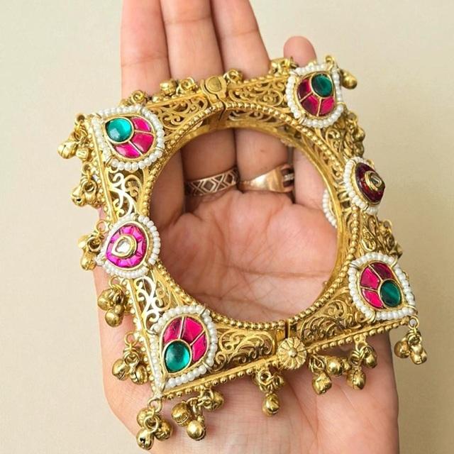 Glamorous Golden Gold Sparkling Stones Look Cuff Bracelet for Modern Wear Functions Bracelet for Women and Girls