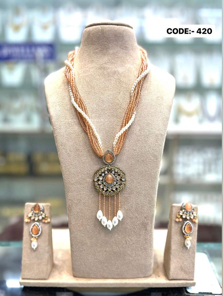 Product name:Vintage Kundan Necklace and Earrings Set with Beads