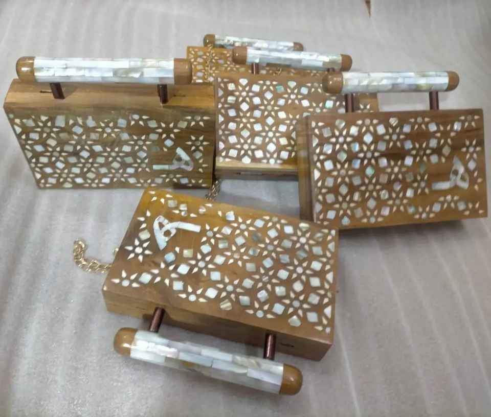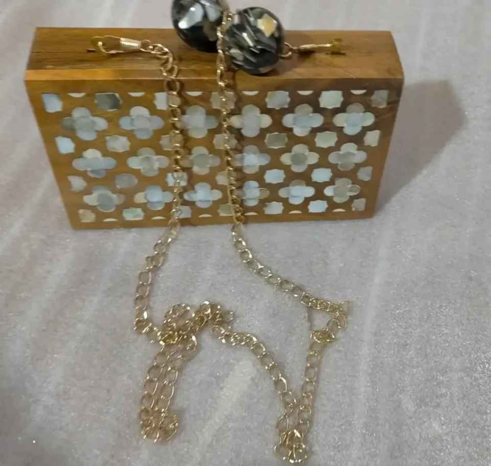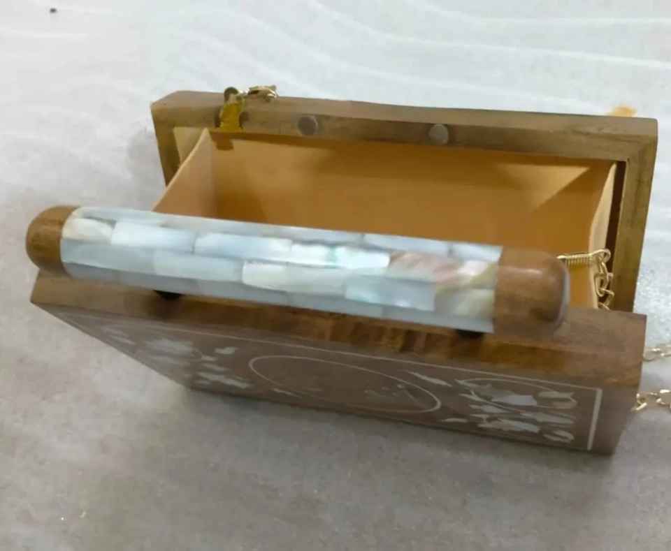 Glamorous Mother of Pearl Box Clutch for Women Handmade Evening Purse with Natural Shell Inlay and Detachable Chain