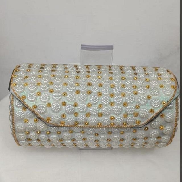 Glamorous Portable Pearl & Rhinestone White Clutch Hand Made Beaded Purses & Clutches Suitable for Fashion Accessory Designers
