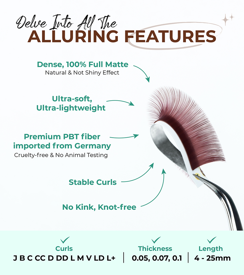 Glamorous matte brown lash extension trays fluffy knot free individual lashes high-end pbt brown bulk lashes wholesale