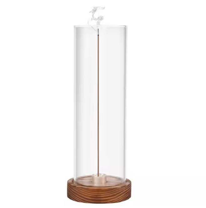 Glass Anti Ash Catcher Incense Holder Tray, Unique Brass Upside Down Vertical Incense Holder, Wooden Bottle Incense Stick Burner
