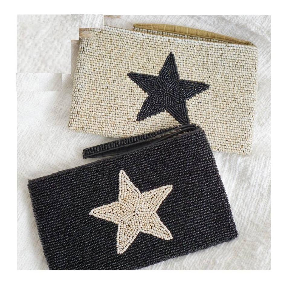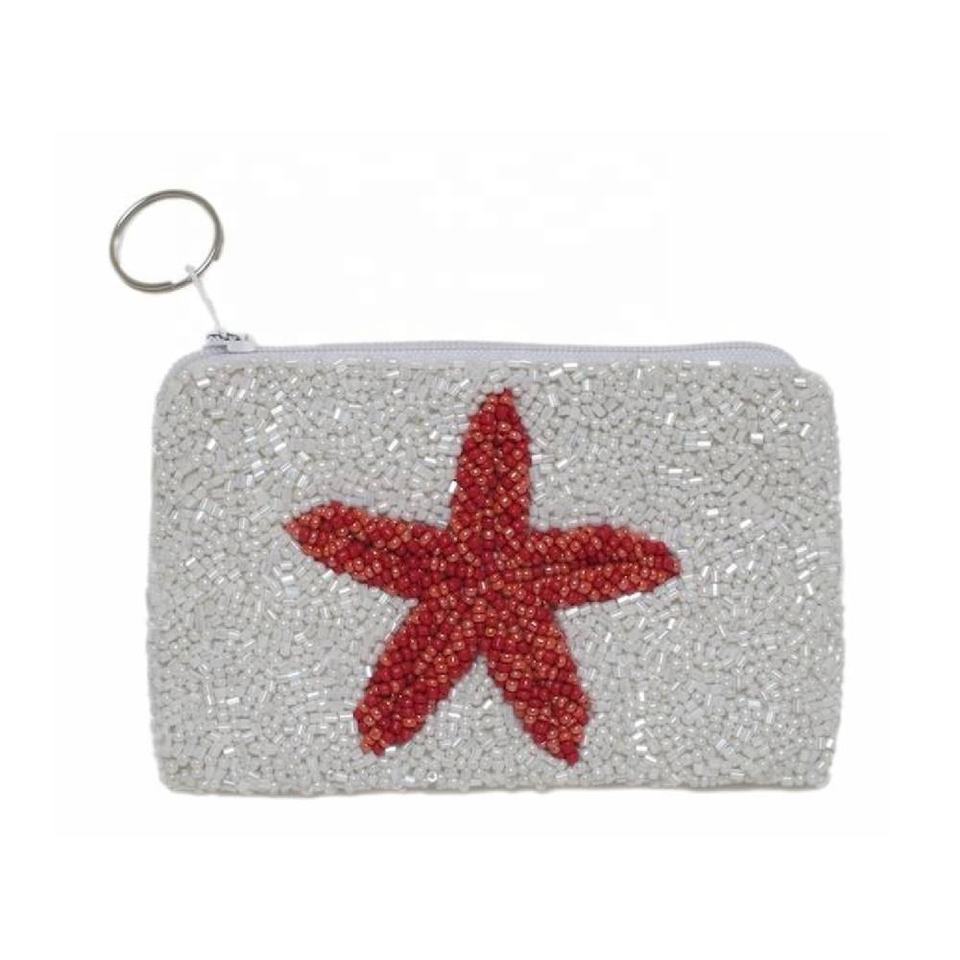 Glass Beaded Coin Purse with Star Pattern Top Zipper Closure Small Size for Pouch Key Cash & Card Multipurpose Use Women Pouch