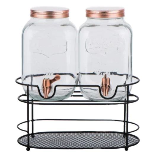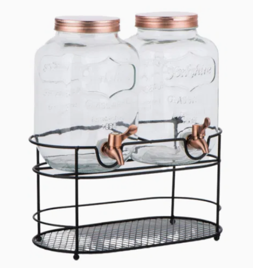 Glass Beverage Dispenser with Plastic Tap and Metal Rack for Party Occasions