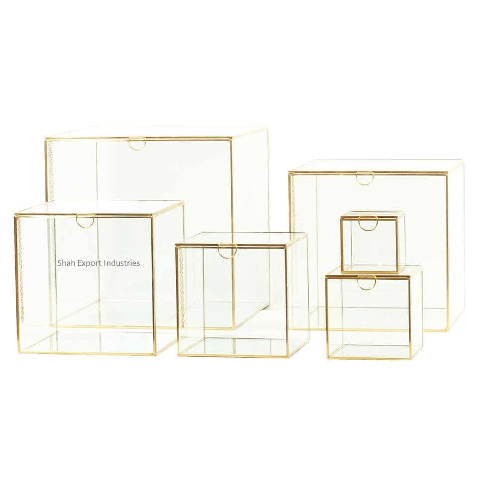 Glass & Brass Display Cases Gold Square Jewelry Containers Large Jeweler Packing & Display Box Luxury Glass Boxes