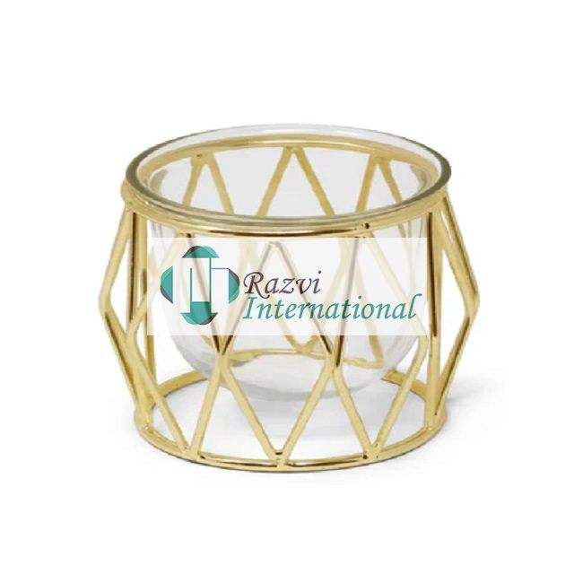Glass Candle Holder on Gold Brass Twirled Design Stand Modern Design Best Quality Luxury Look Candle Holder at Affordable Price