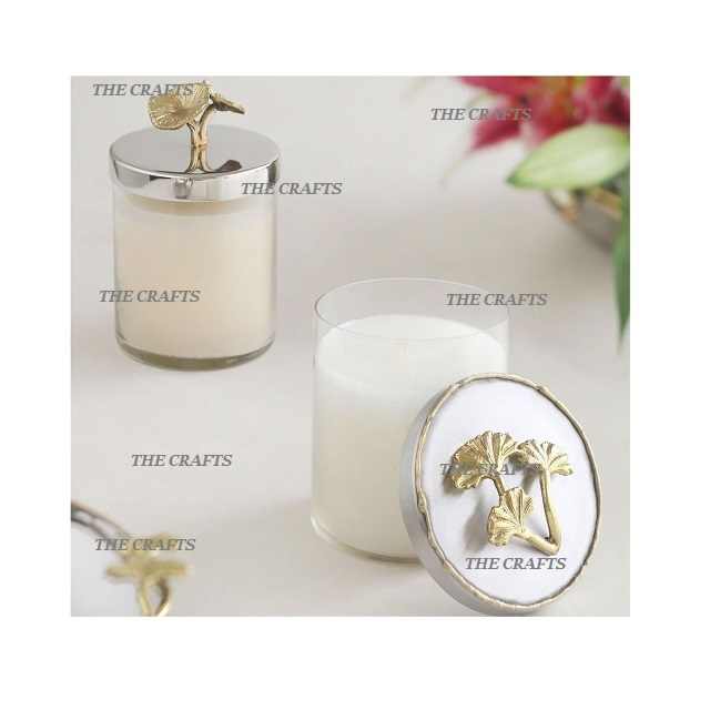 Glass Candle Holder With Aluminum Lid Set Of Two Round Shape Candle Holder For Living And Drawing Room Decor
