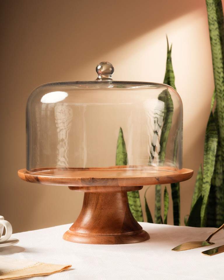 Glass Cheese Dome With Wooden Board Glass Dome Cake Stand With Wooden Pedestal Base For Dessert Display Dessert Serving Dome