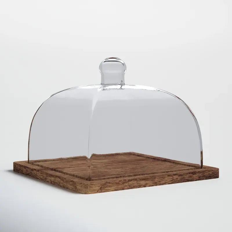 Glass Cloche with Wooden Base Glass Dome with Wood Base Cake Glass Cloche Food Display Glass Dome