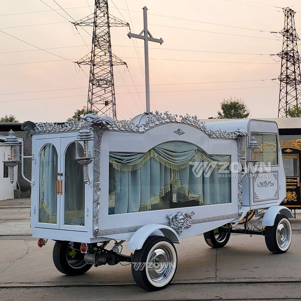 Glass Covered White 4-Wheel Electric Funeral Hearse Horse-drawn Coffin Carriage