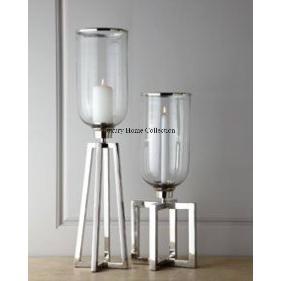 Glass Decorative Votive Holder With Silver Color Base Mirror Polish Tabletop Decorative Handmade Designer Fancy Look for Hotel