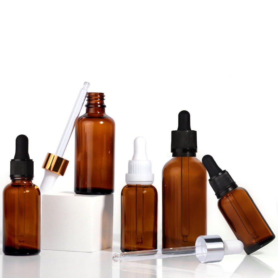 Glass Essential Oil Bottle Amber Glass Serum Essential Oil Dropper Bottle Round Glass Cosmetic Bottle