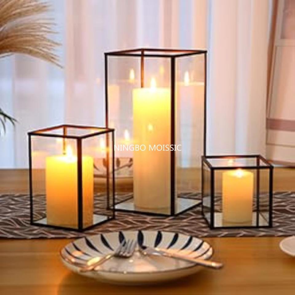 Glass Hurricane Candle Holder Set of 3 PCS Black Hurricane Candleholders for Wedding Party Holiday Birthday Home Decor Lanter