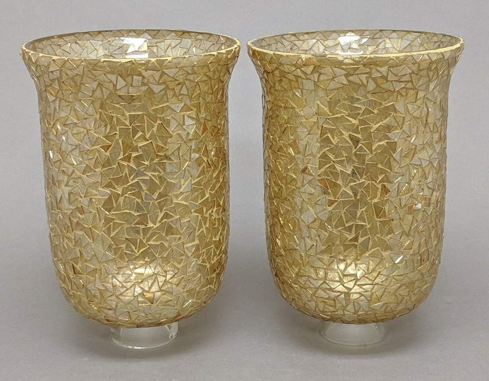 Glass Hurricane Shades Gold Mosaic for Candle Holders