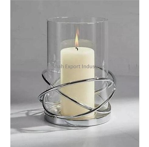 Glass Hurricanes Pillar Candle Holder Table Decoration Centerpiece Silver Metallic Heavy Duty Suitable for Home & Wedding Decor