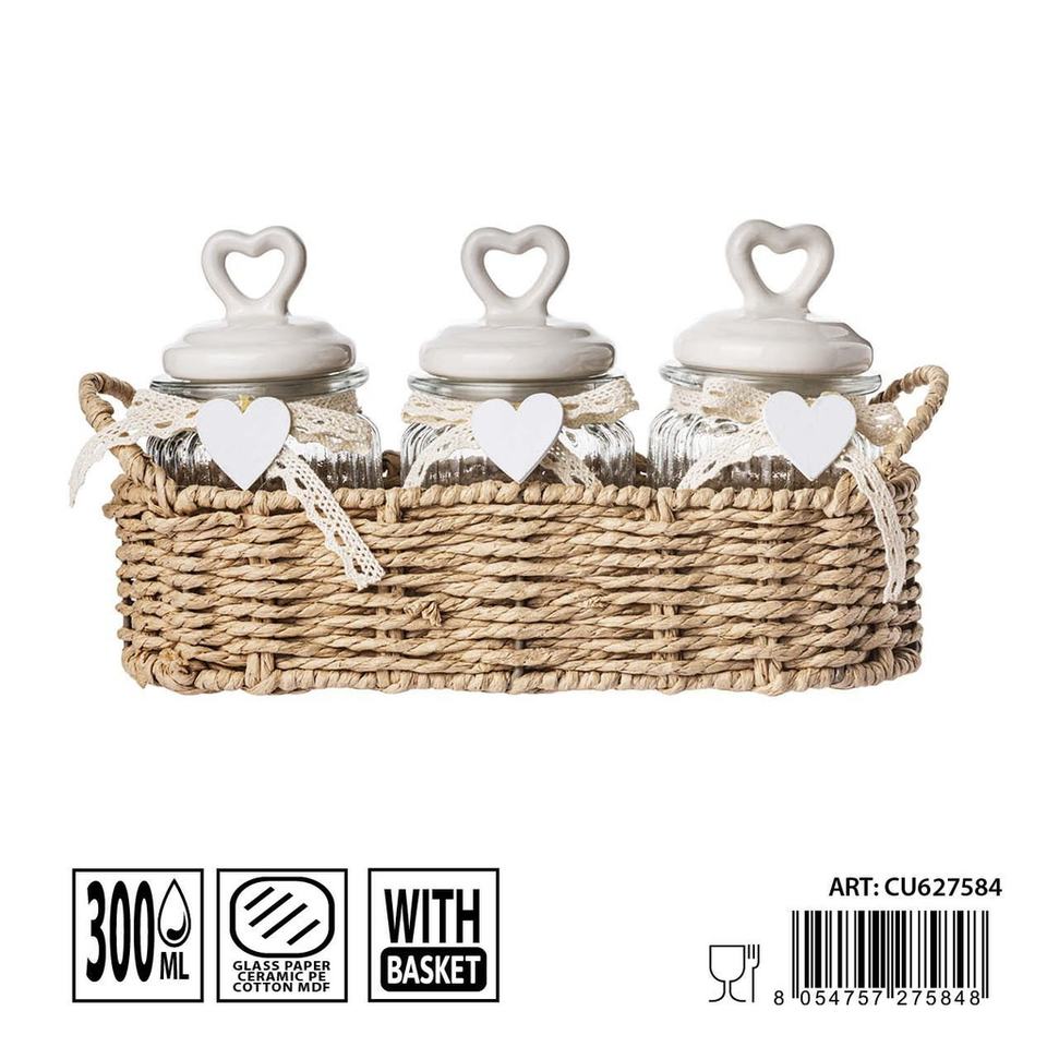 Glass Jars with Basket 300ml 27.5x7.5x14cm - Household Items and Storage Jars