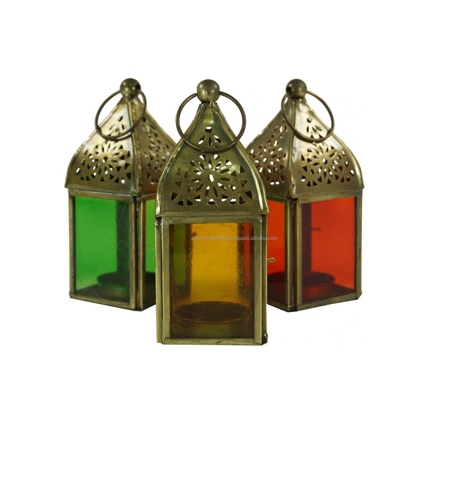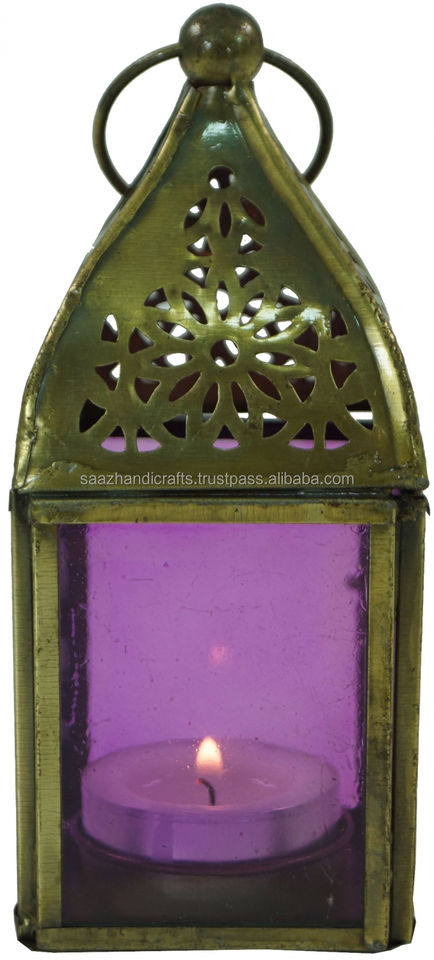 Glass Lantern, Lantern, Brass Tealight Holder in 6 Colours Moroccan Candle HolderHexagonal Moroccan Candle Holder