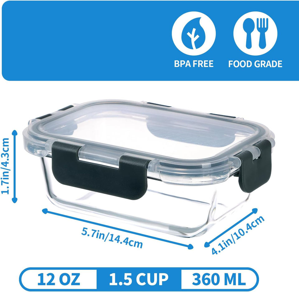Glass Meal Prep Containers with Lids Glass Food Storage Containers Airtight Lunch Containers Lunch Box Snap Locking Lids