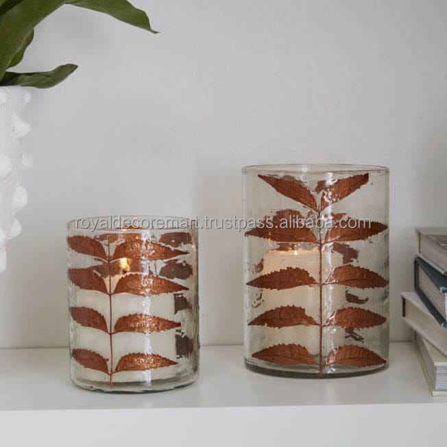 Modern Theme Glass Mosaic Tealight Holder Real Leaf Design Multi-Size Home Decorative Candleholder Royal Incense Diffuser