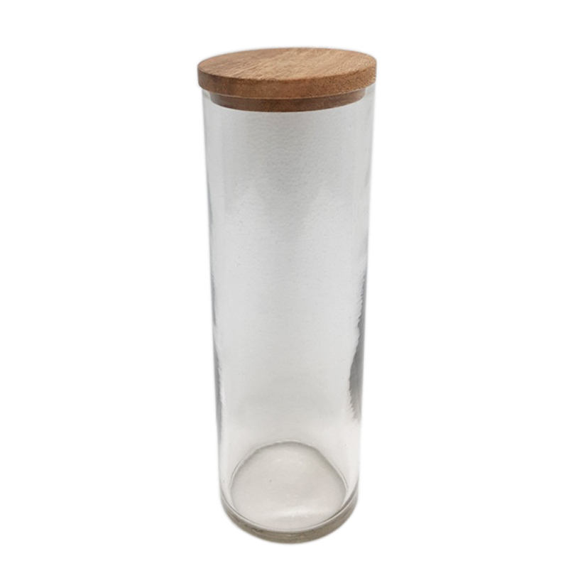 Glass Round Box With Mango Wood LID Natural Colour Small Size Luxury Design Storage Jars for Kitchen & Table Top Decoration