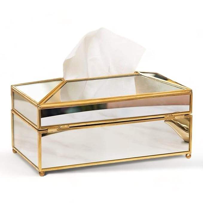 Glass Tissue Box Made of Brass and Glass for Home Decoration Office Decoration
