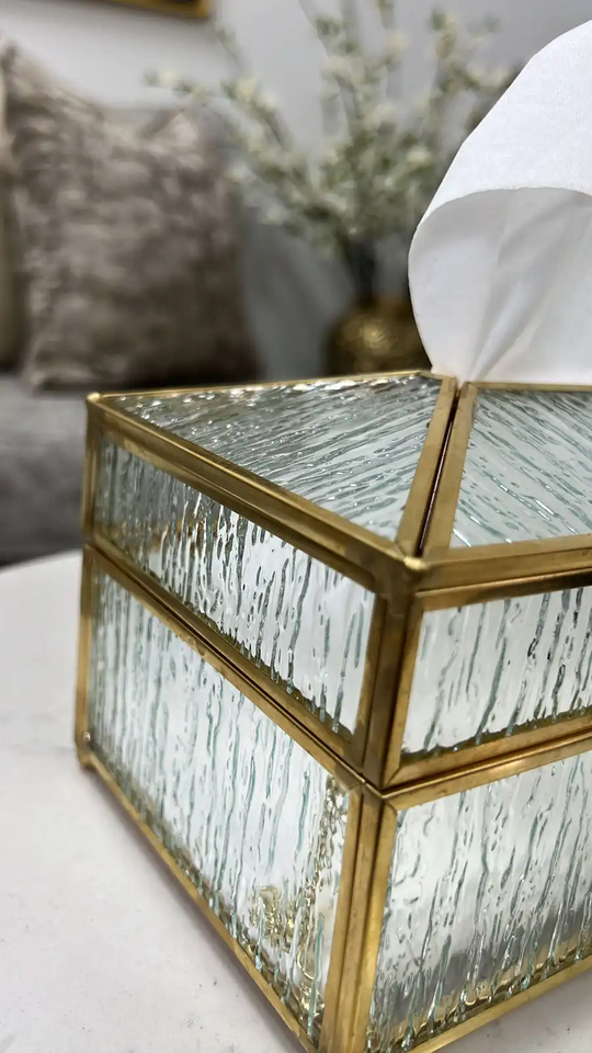 Glass Tissue Box With Brass Frame Luxury Home Hotel and Restaurant Decorative Mirror Tissue Box