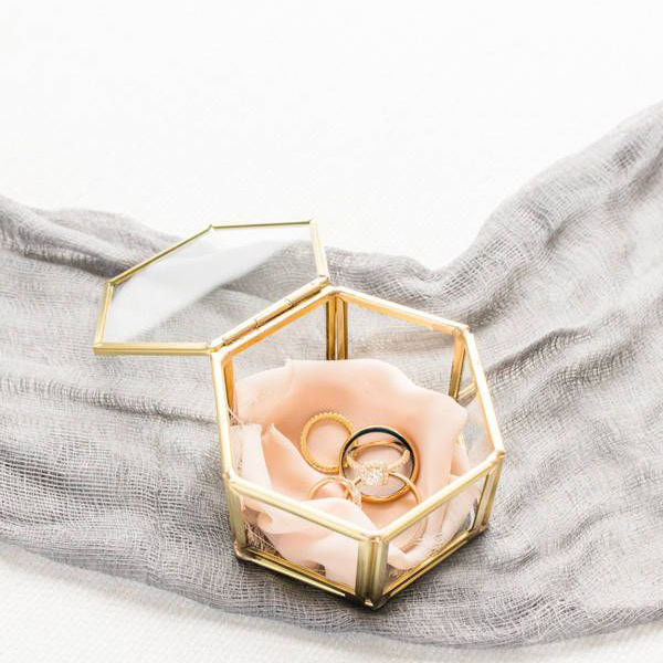 Glass Vintage Jewelry Box Golden Geometric Jewelry Display Organizer Keepsake Box Case Home Decorative Box