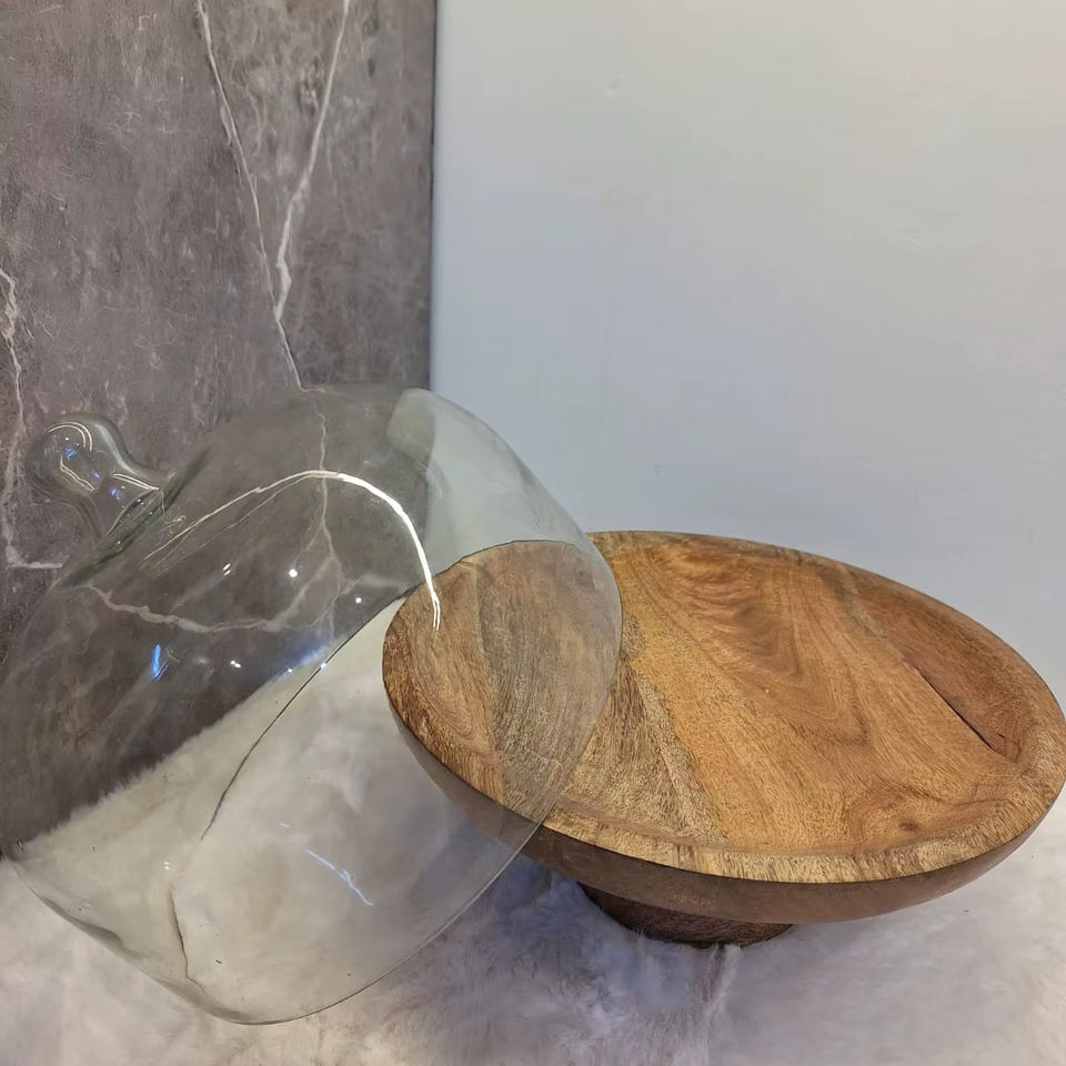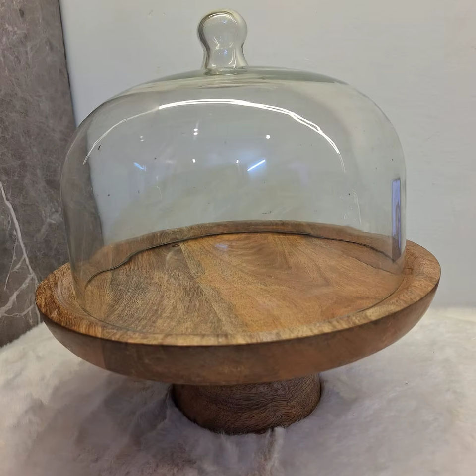 Glass cloche with wooden base Glass dome cake stand Wooden base glass cake dome Cake stand with glass cover Glass food