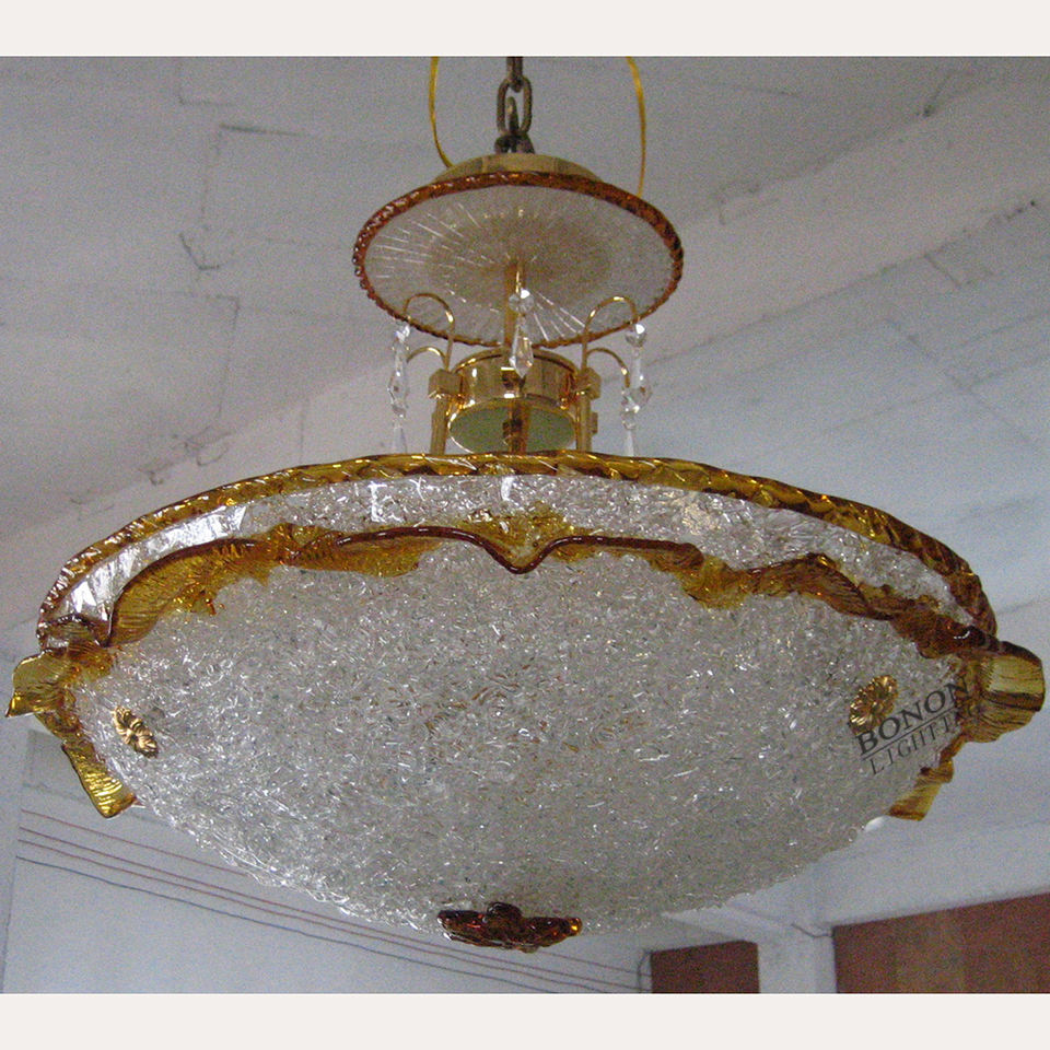 Glass panel sunshade antique brass handmade copper lamp retro classic hanging chandelier