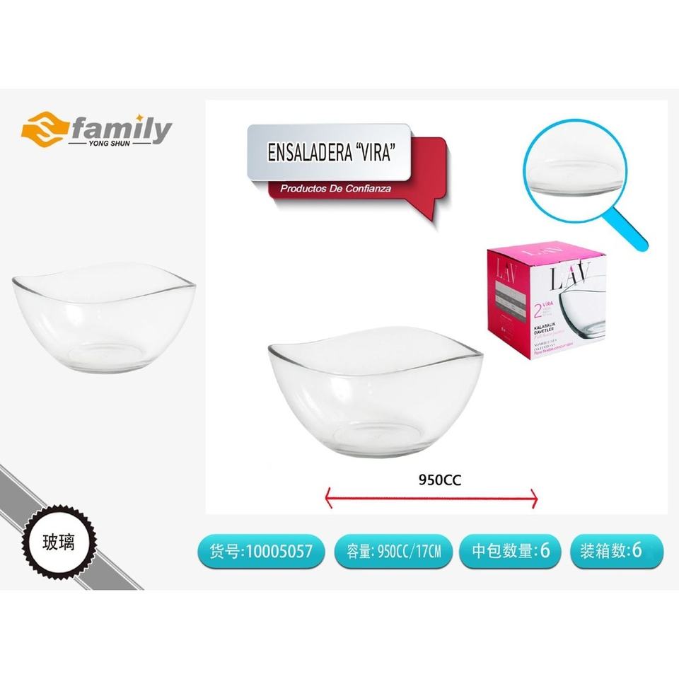 Glass salad bowl 17 cm - 950 cc - Glassware and containers