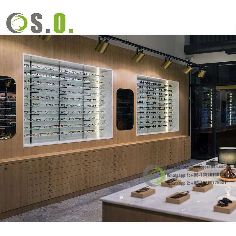 Usage:Wooden Sunglass Display counter Custom Eyeglasses Store Design