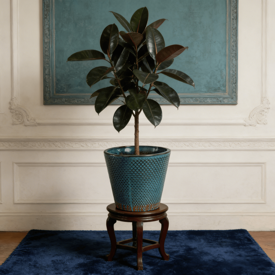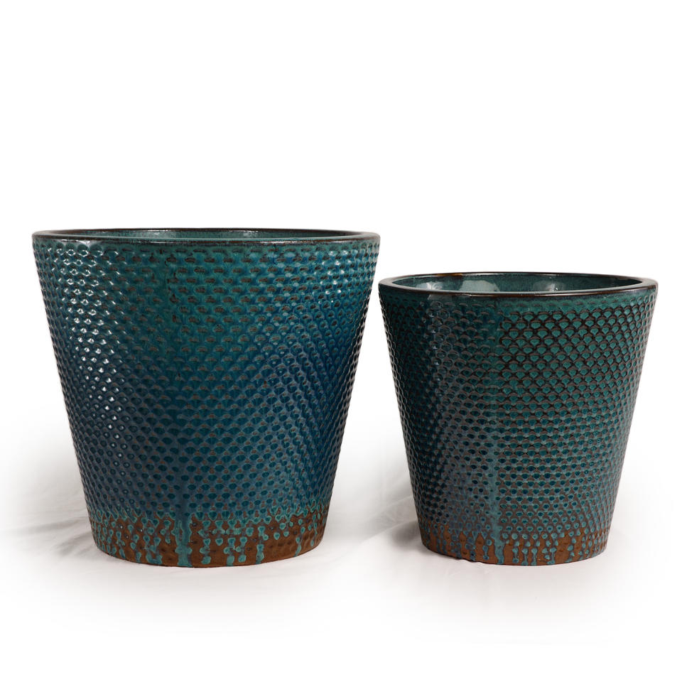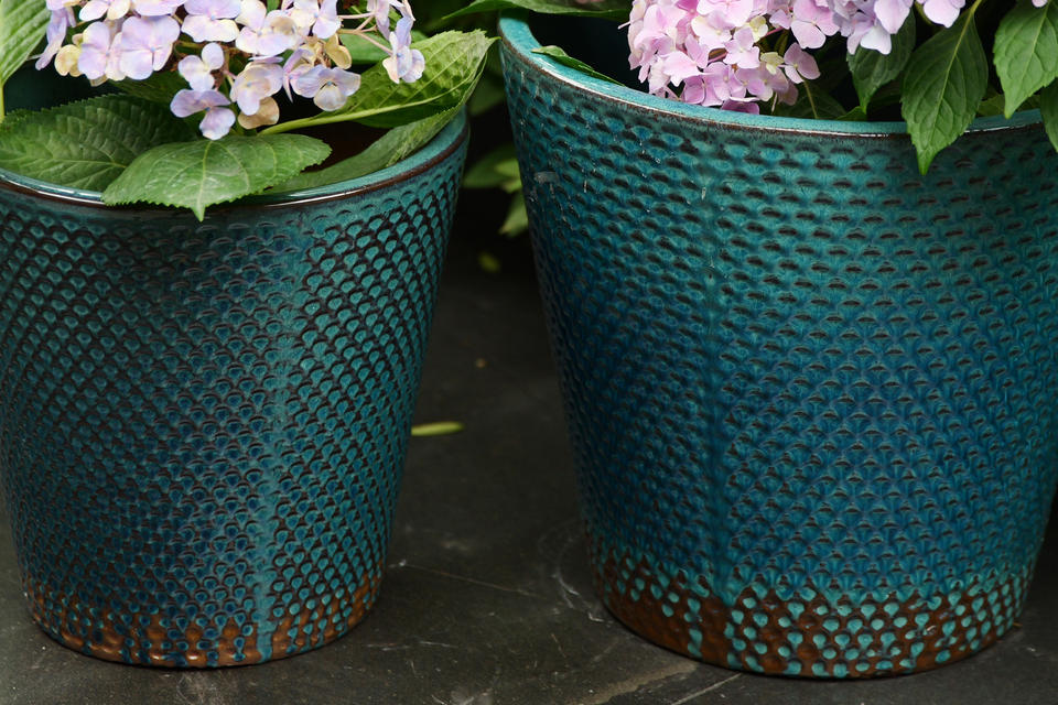 Glazed Ceramic Eco-Friendly Durable Flower Pot Drainage Hole Teal-Black Mini Fish Scale Embossed Texture Indoor Garden Planter