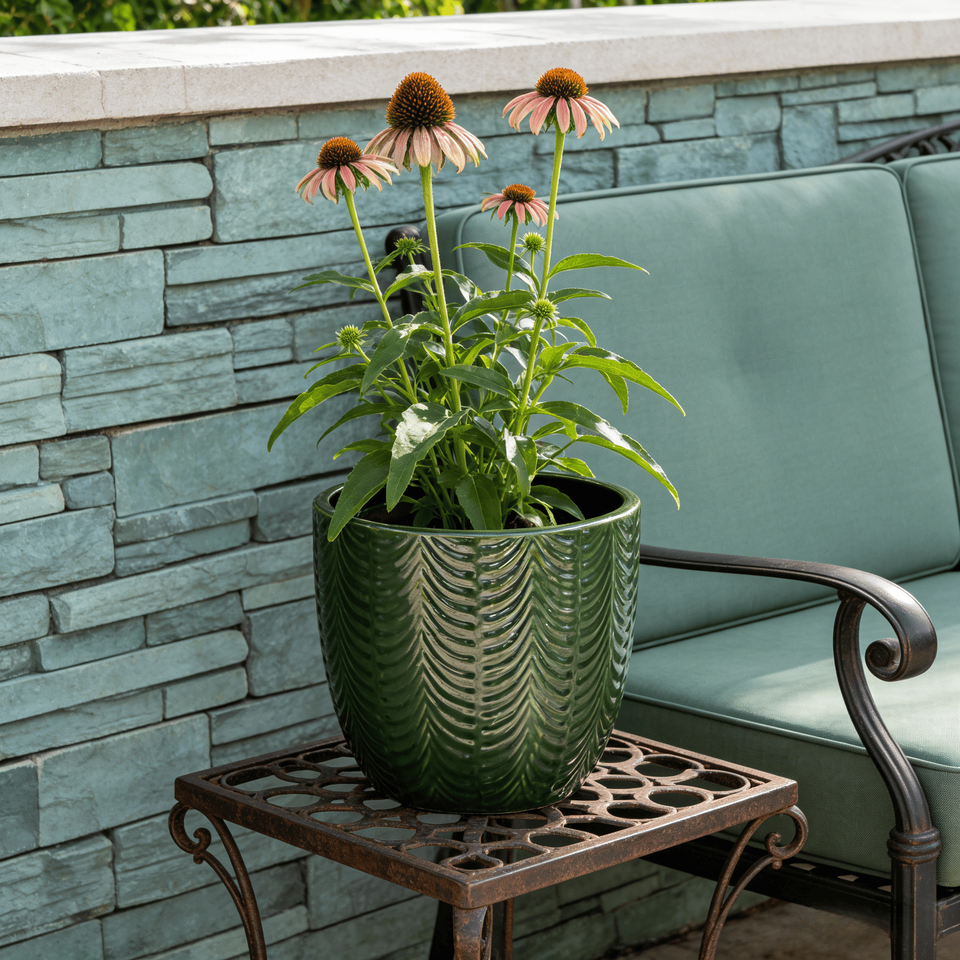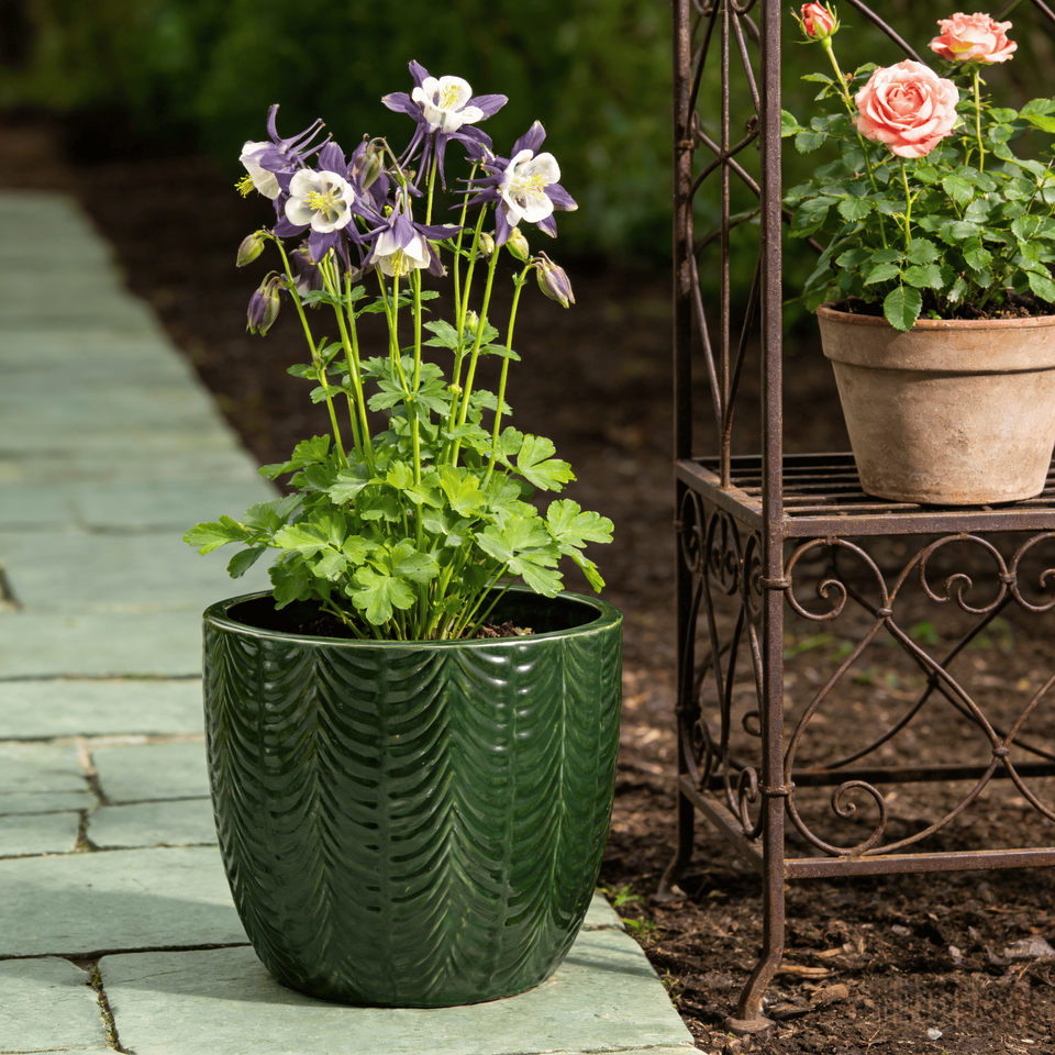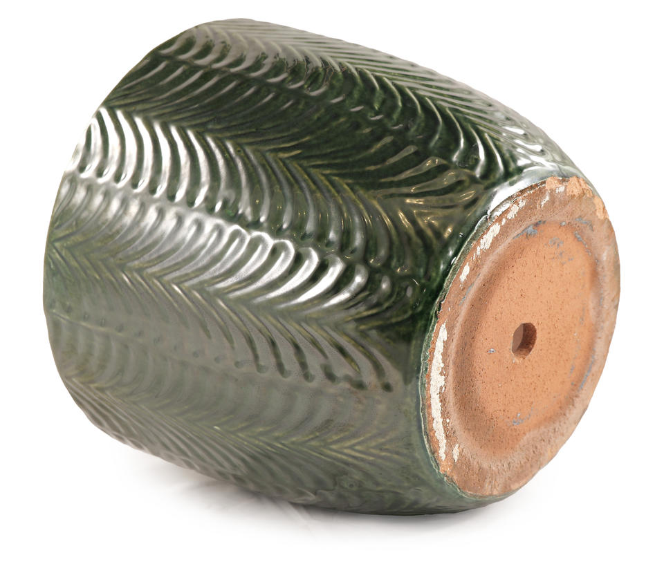 Glazed Ceramic Flower Pot Set Forest Green Chevron Embossed Texture Eco-Friendly Indoor/Outdoor Planters Drainage Hole Home
