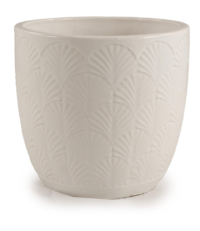 Glazed Ceramic Flower Pot Set Matte White Palm Leaf Embossed Texture Indoor Planters Drainage Hole Eco-Friendly Home Garden