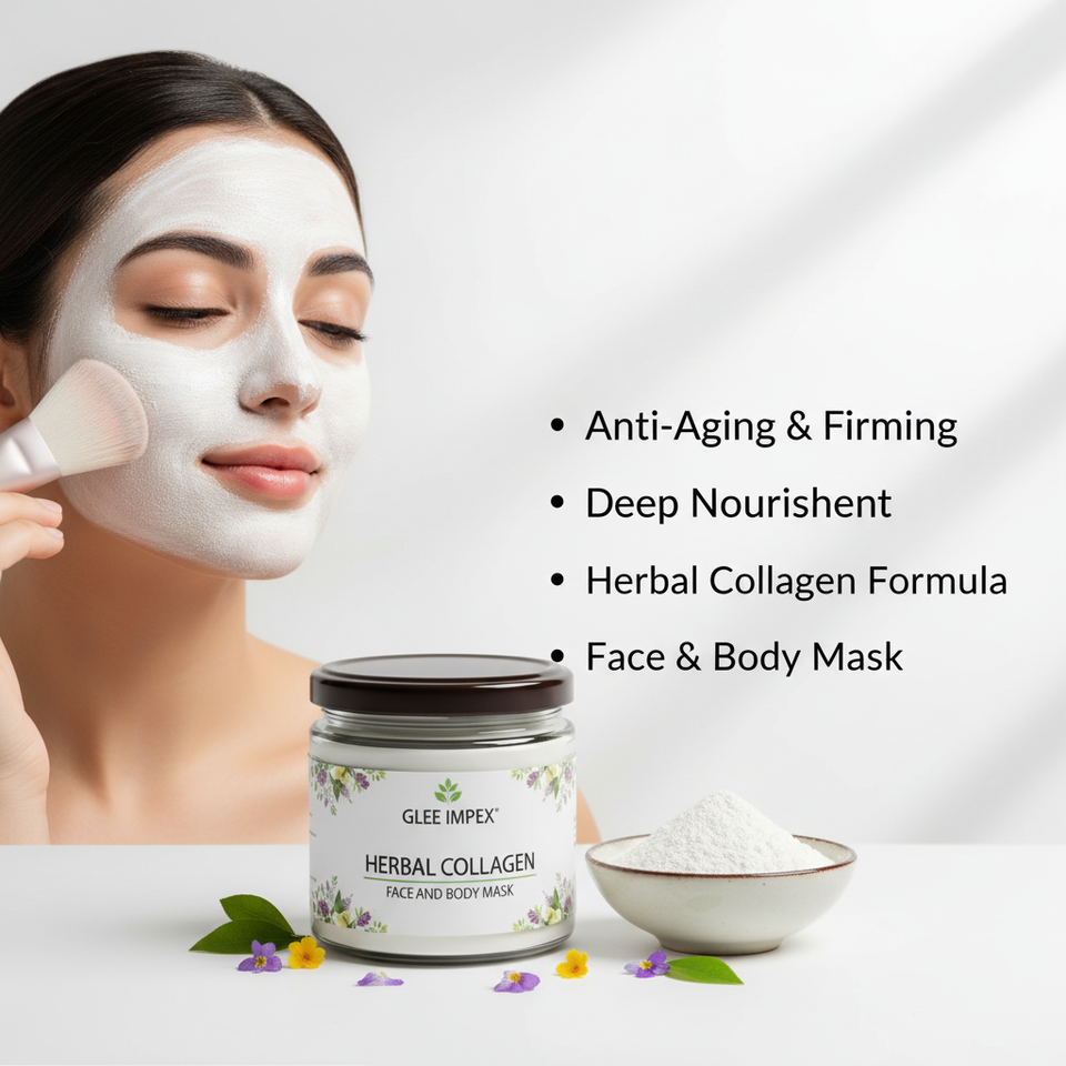 Glee Impex Herbal Collagen Vitamin C Mineral Powdered Face and Body Mask for Dry Skin Brightening Firm Smooth Skin Care